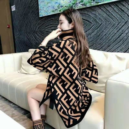 2021 Girls Slim Knit High Neck Split Sleeve Sweater